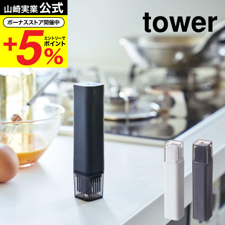 山崎実業 tower フタ付き油引き タワー キッチン 公式 ホワイト/ブラック 油ひき ハケ オイルブラシ シリコン ブラシ 調理器具