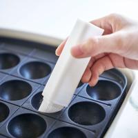 油を伸ばすためのシンプルな油引き。中に油を入れないのでご使用ごとに丸洗いでき、いつも清潔に保てます。ブラシの長さが段々になっているのでたこ焼き器の半球状のプレートにも塗りやすい形状です。フライパンなどに入れた油をサッと伸ばすだけ。少量の油でまんべんなく塗ることができます。