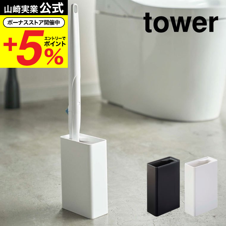 山崎実業 tower 流せるトイレブラシスタンド タワー 収納 公式 ホワイト/ブラック トイレ収納スリム トイレブラシ立て 掃除道具収納