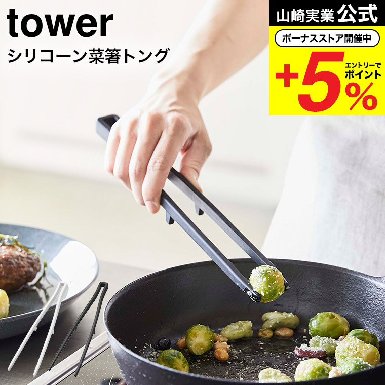 山崎実業 tower シリコーン菜箸トング タワー キッチン 公式 ホワイト/ブラック お箸 さいばし トング キッチンツール シリコン 直置き