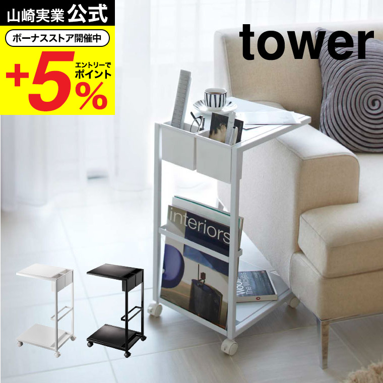山崎実業 tower サイドテーブルワゴン タワー インテリア 公式 ホワイト/ブラック 7155 7156 送料無料 ベッドサイドテーブル ローテーブル