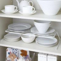 食器棚の散らかりがちなお皿を一括収納、出し入れ簡単。ワイドサイズだから使い易く、小皿から大皿など様々なサイズが収納可能です。