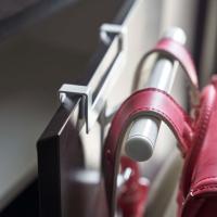 玄関の下駄箱収納扉に簡単取付け。便利なランドセル&リュックハンガー!用途に合わせて使い方自在。 下駄箱収納扉に差し込むだけで簡単に取り付けできます。リュックやランドセルをしっかり掛けられる丈夫なスチール製のハンガー。 ハンガーは雨具や傘などの一時掛けにも便利です。