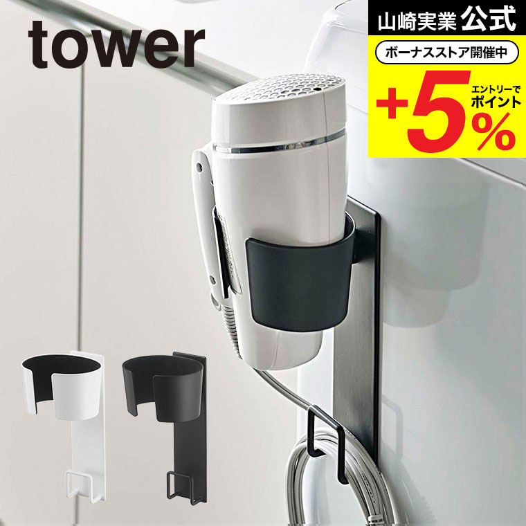 山崎実業 tower ドライヤーホルダー タワー 収納 公式 ホワイト/ブラック 5391 5392 送料無料 洗面所 洗濯機横 洗濯機横マグネット収納ラック