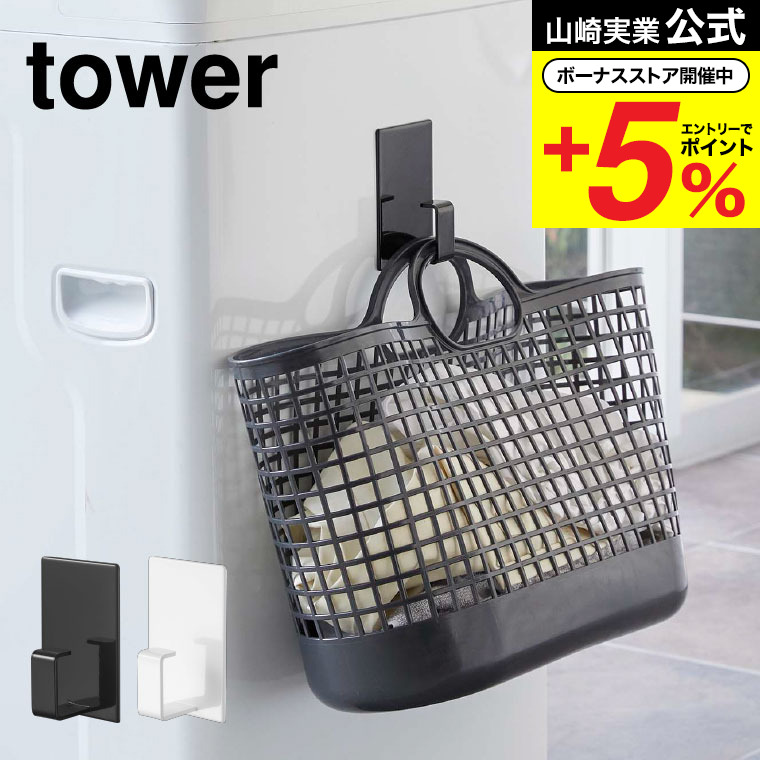 山崎実業 tower マグネットランドリーバスケットホルダー タワー 収納 公式 ホワイト/ブラック 5417 5418 洗濯機横 フック ハンガーかけ 磁石