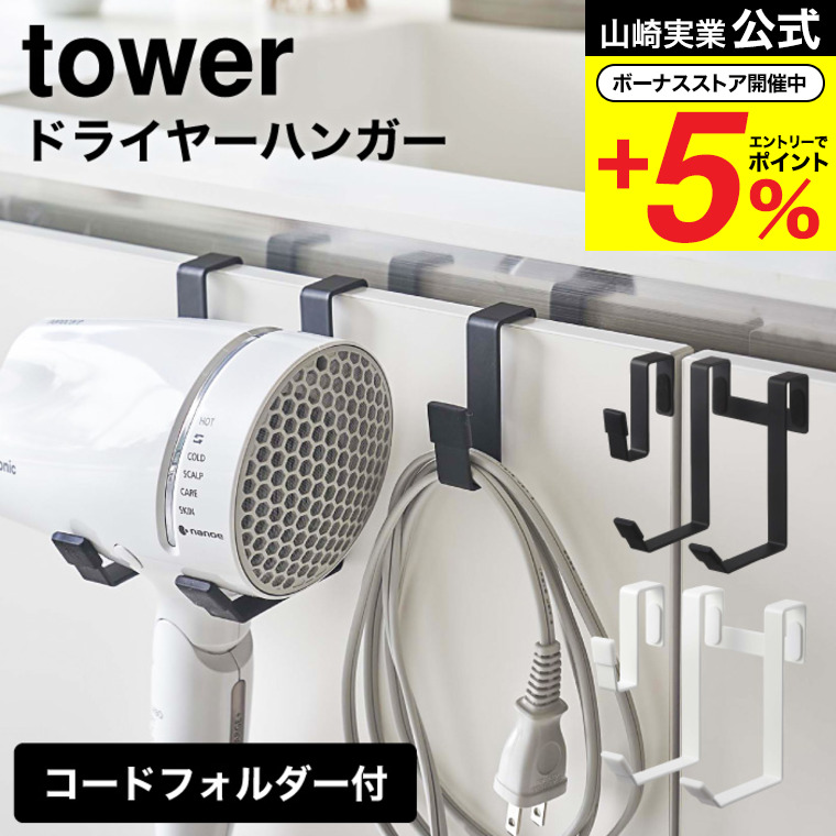 山崎実業 tower ドライヤーハンガー タワー 収納 公式 ホワイト/ブラック 送料無料 5385 5386 ドライヤー置き ドライヤースタンド 洗面台 フック 洗面所