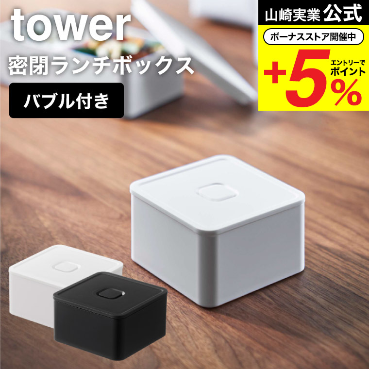 山崎実業 tower バルブ付き密閉ランチボックス タワー 公式 スクエア ホワイト/ブラック 5411 5412 弁当箱 お弁当箱 1段 食品保存