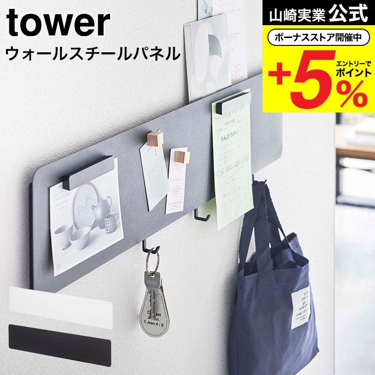 山崎実業 tower フック付きウォールスチールパネル タワー 小物入れ 公式 ワイド ホワイト/ブラック 5530 5531 送料無料 / リビング キッチン