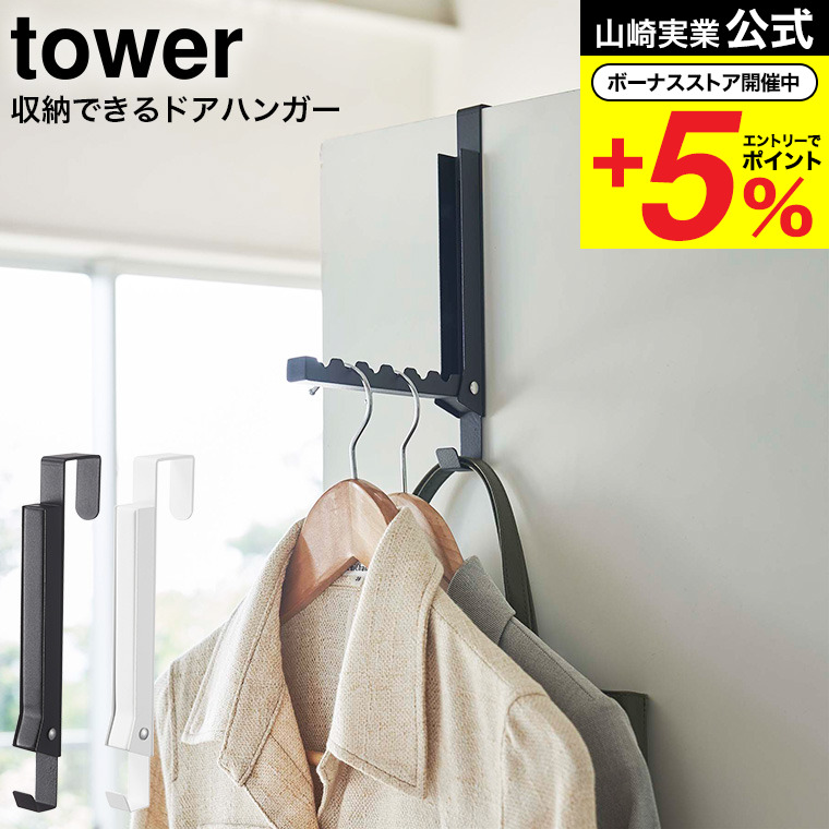 山崎実業 tower 使わない時は収納できるドアハンガー タワー 収納 公式 ホワイト/ブラック 5514 5515 / 送料無料 折り畳みドアハンガー