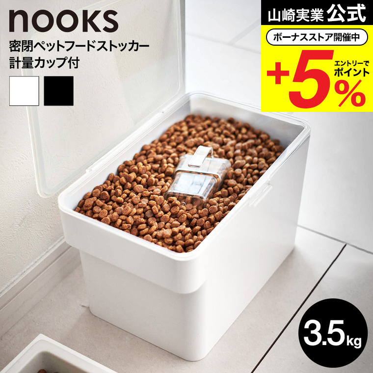 山崎実業 nooks 密閉ペットフードストッカー ヌークス 公式 3.5kg 計量カップ付 ホワイト/ブラック 5611 5612 送料無料 / 保存容器