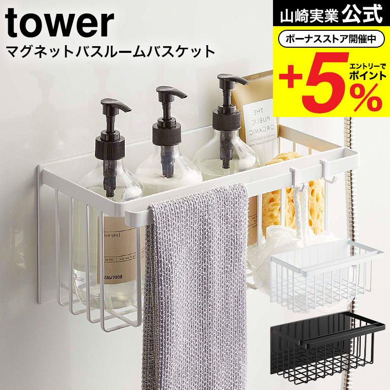 山崎実業 tower マグネットバスルームバスケット タワー お風呂 公式 ホワイト/ブラック 5542 5543 送料無料 浴室収納 ディスペンサー おもちゃ収納