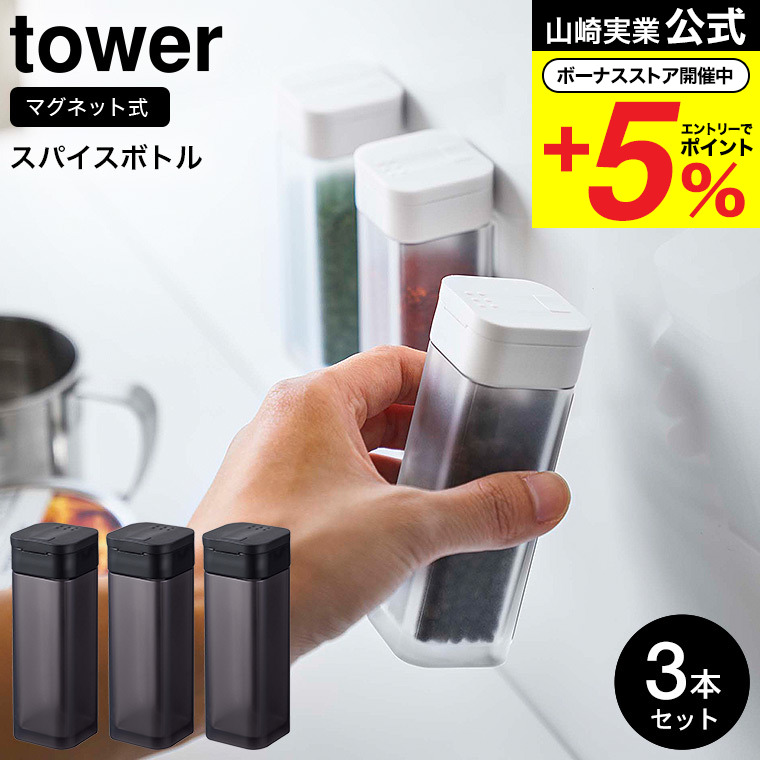 山崎実業 tower マグネットスパイスボトル タワー キッチン 公式 3個セット ホワイト/ブラック 4813 4814 送料無料 調味料入れ 調味料ボトル 調味料ストッカー