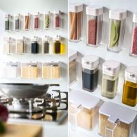 マグネットが付く冷蔵庫やパネルに簡単取り付けの調味料容器シリーズ。 使う量を片手で調節できるスパイスボトル。