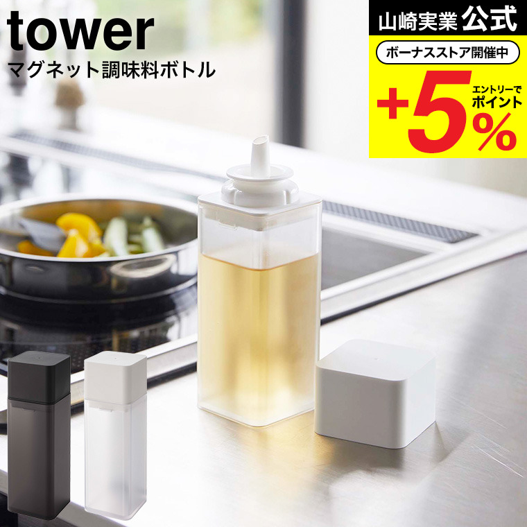 山崎実業 tower マグネット調味料ボトル タワー キッチン 公式 ホワイト/ブラック 5718 5719 送料無料 調味料 醤油 しょうゆ 油 スパイス 磁石