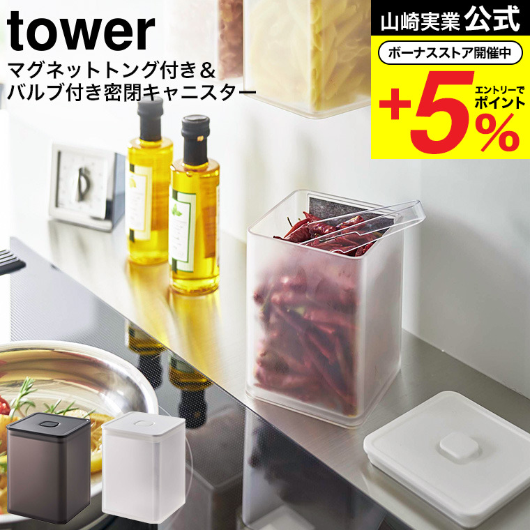 山崎実業 tower マグネットトング付き&バルブ付き密閉キャニスター タワー キッチン 公式 ホワイト/ブラック 5726 5727 / 送料無料