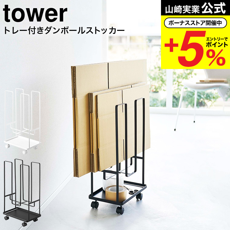 山崎実業 tower トレー付きダンボールストッカー タワー 小物入れ 公式 ホワイト / ブラック 5760 5761 送料無料