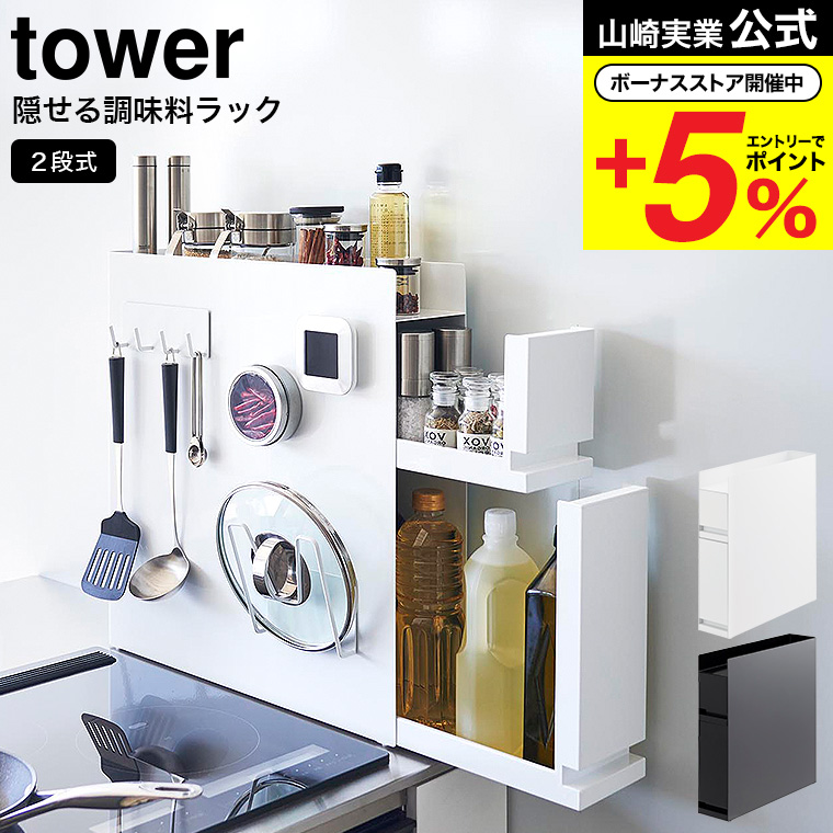 山崎実業 tower [ 隠せる調味料ラック タワー キッチン 公式 2段 ] ホワイト ブラック 4334 4335 スパイスラック 送料無料 / 隙間収納