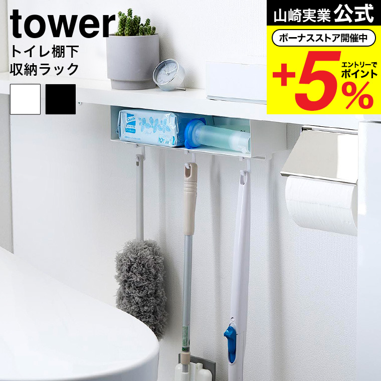 山崎実業 tower トイレ棚下収納ラック タワー 公式 収納 送料無料 3758 3759 ホワイト ブラック / トイレ収納 フック トイレ用品