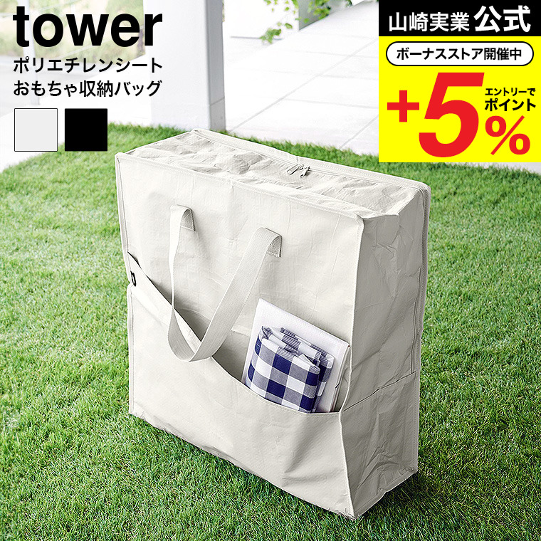 山崎実業 tower ポリエチレンシートポケット付きおもちゃ収納バッグ タワー 公式 収納 送料無料 1814 1815 ライトグレー ブラック