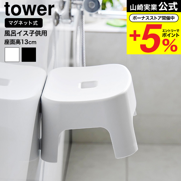 山崎実業 tower マグネット風呂イス タワー 公式 キッズ用 SH13 お風呂 送料無料 1852 1853 ホワイト ブラック / 座面13cm 子供用 バスチェア