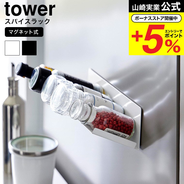 山崎実業 tower マグネット斜め置きスパイスラック タワー キッチン 公式1905 1906 ホワイト ブラック 送料無料 / 調味料ラック