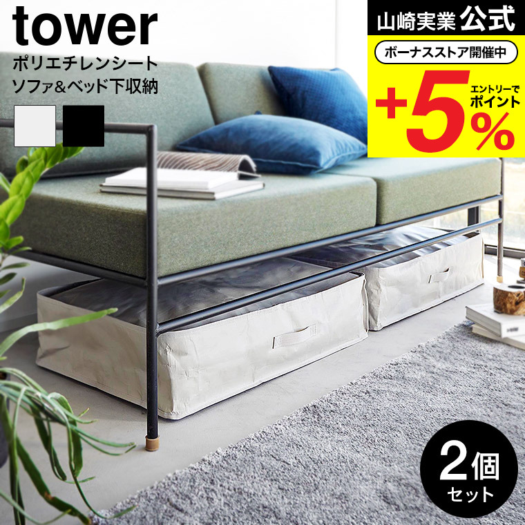山崎実業 tower ポリエチレンシート ソファ&ベッド下収納ケース タワー 収納 公式 2個組送料無料 1915 1916 ライトグレー ブラック / 収納バッグ