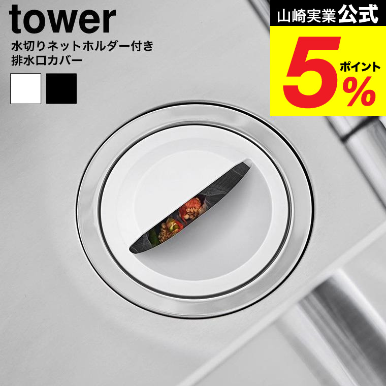 山崎実業 tower 水切りネットホルダー付き排水口カバー タワー 公式 1311 1312 ホワイト ブラック / 排水口ネット 水切りネット