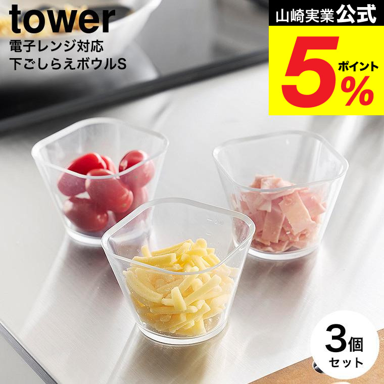 山崎実業 tower 電子レンジ対応洗いやすい下ごしらえボウル タワー S3個組 公式 10127 クリア 送料無料 / 250mL 調理ボウル 耐熱ボウル