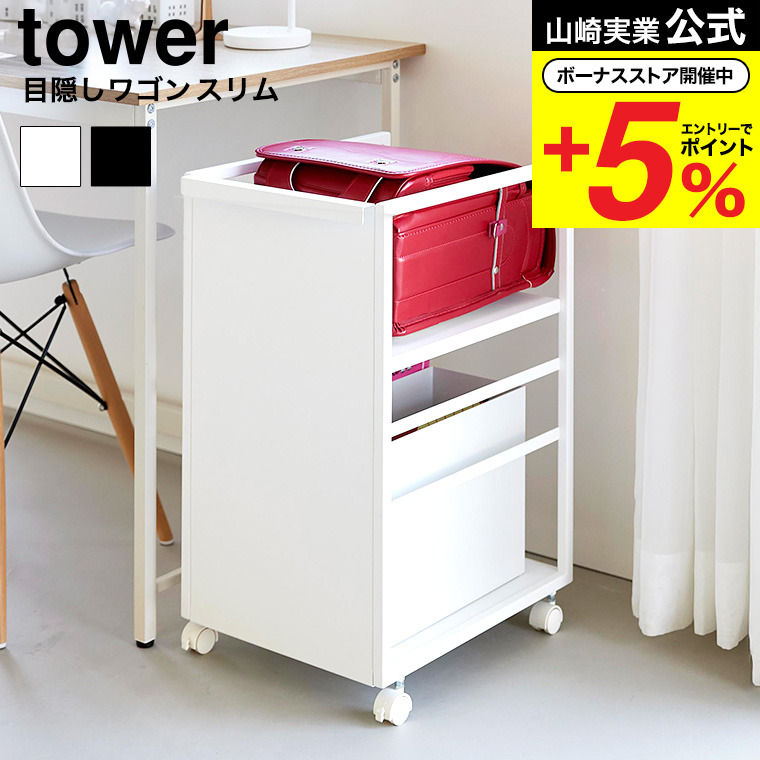 山崎実業 tower 目隠しワゴン タワー スリム 公式 8468 8469 ホワイト ブラック 送料無料 / 2段 収納 キャスターワゴン キッチンワゴン