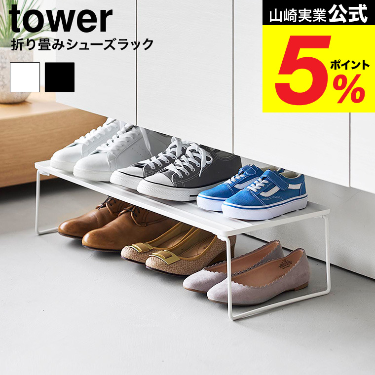 山崎実業 tower 折り畳みシューズラック タワー 公式 10362 10363 ホワイト ブラック 送料無料 / 玄関 靴収納 玄関収納 靴置き 靴箱 靴棚