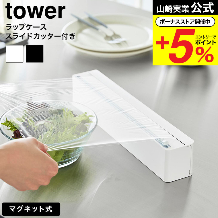 山崎実業 tower マグネットラップケース タワー スライドカッター付き 公式 10658 10659 ホワイト ブラック 送料無料 / ラップカバー ラップホルダー