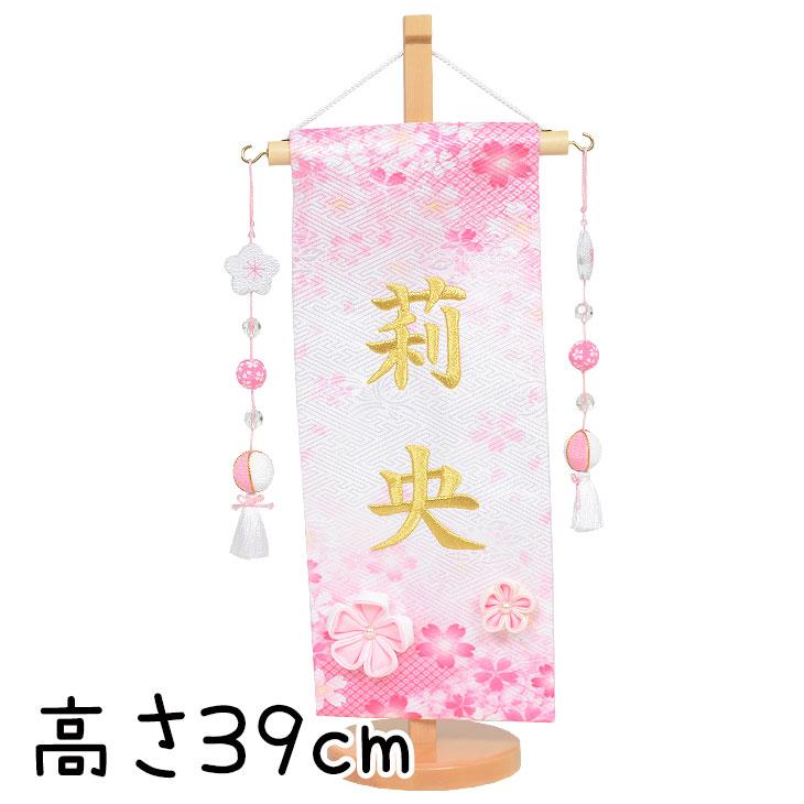 節句飾りに彩りを与える女の子 名前旗 刺繍 お名前入り旗飾り-ピンク友禅(小)-