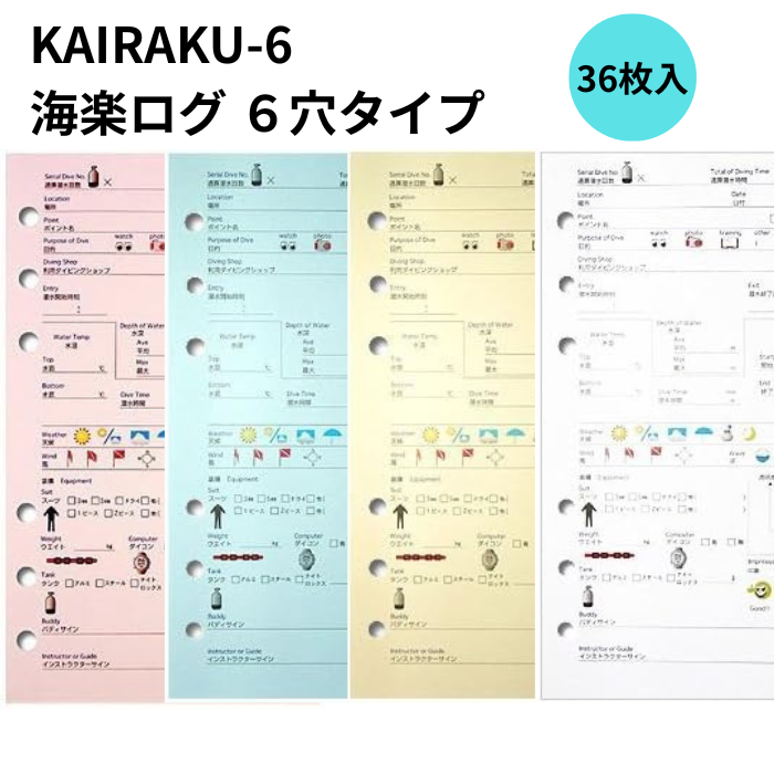 HUSE(ヒューズ) 4547 KAIRAKU-6 海楽ログ 6穴タイプ ログブックレフィル ログシート ダイビング ダイブログ