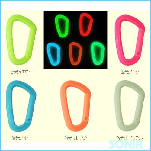 特徴:ボディーとイタバネの一体成型に成功。金属部が一切無いさびないアクセサリ-カラビナとして最適です。