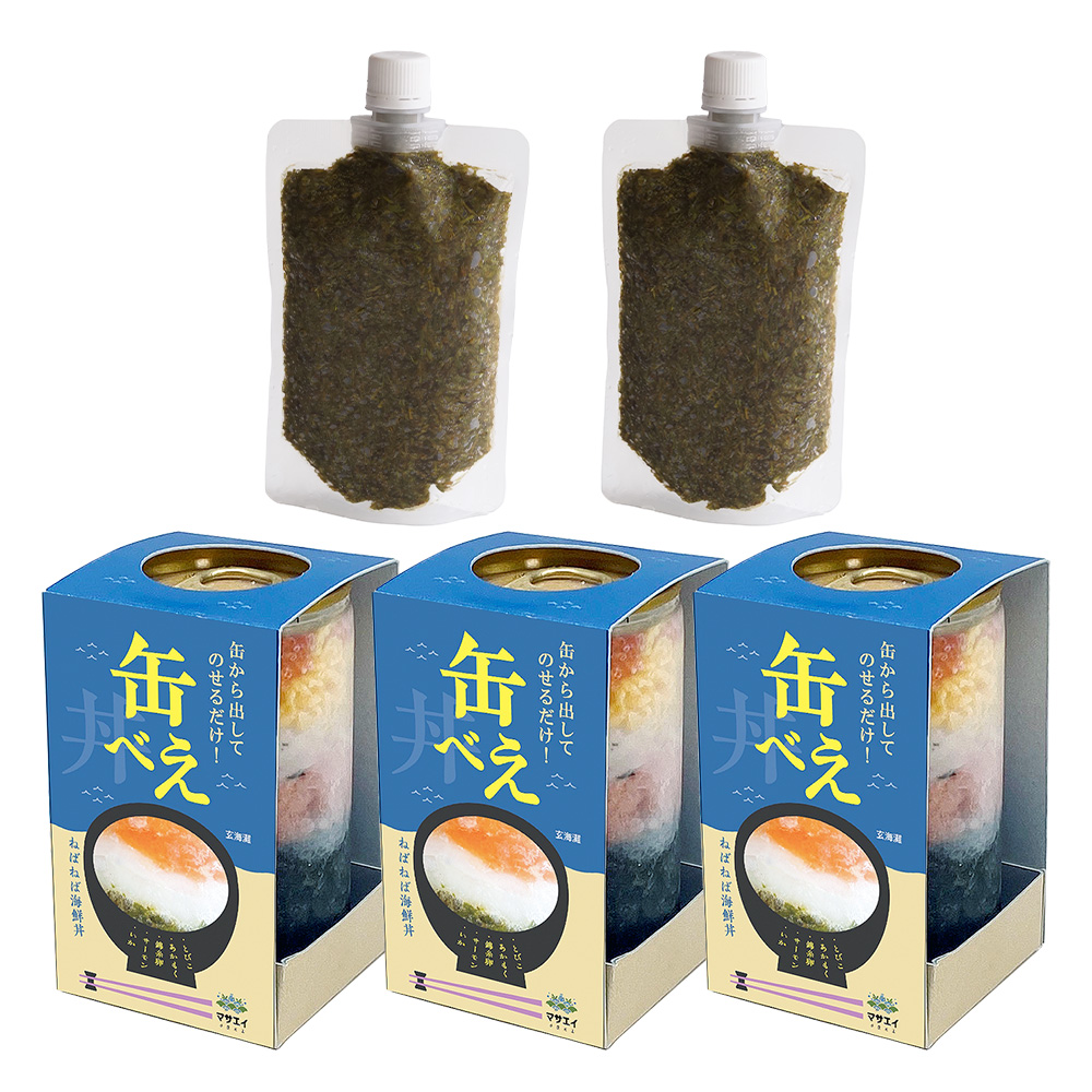 味付あかもく(あかもく(玄界灘産)、つゆ(醤油、砂糖、米発酵調味料、その他))、ギンザケ加工品(ギンザケ、食塩、醤油)、イカ加工品(スルメイカ、食塩、還元水飴)、錦糸卵(卵液、乾燥卵、還元水飴、その他)、とびこ(とび魚卵、砂糖、食塩、その他)/調味料(アミノ酸等)、甘味料(トレハロース、ソルビドール、ステビア)、保存料(ソルビン酸K)、加工澱粉、酒精、pH調整剤、酸味料、増粘剤(キタンサンガム)、膨張剤、酸化防止剤(V.C、カテキン)、着色料(黄4、赤102、カロチロイド)、(一部に小麦、卵、イカ、サケを含む)