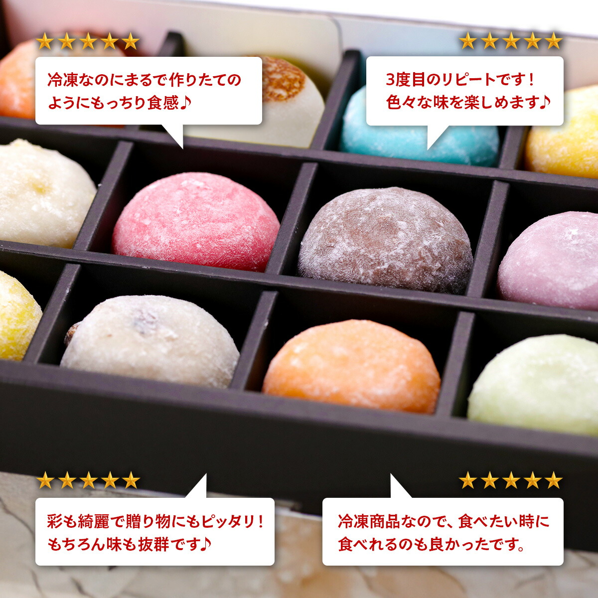 <原材料>クリームチーズフラワーペースト(国内製造)、もち粉、砂糖、でん粉、もち米(滋賀県産)/トレハロース、加工でん粉、ソルビトール、乳化剤、酵素、pH調整剤、グリシン、香料、保存料(ポリリジン)、着色料(赤3、黄4)、(一部に乳成分・小麦・卵・大豆を含む)