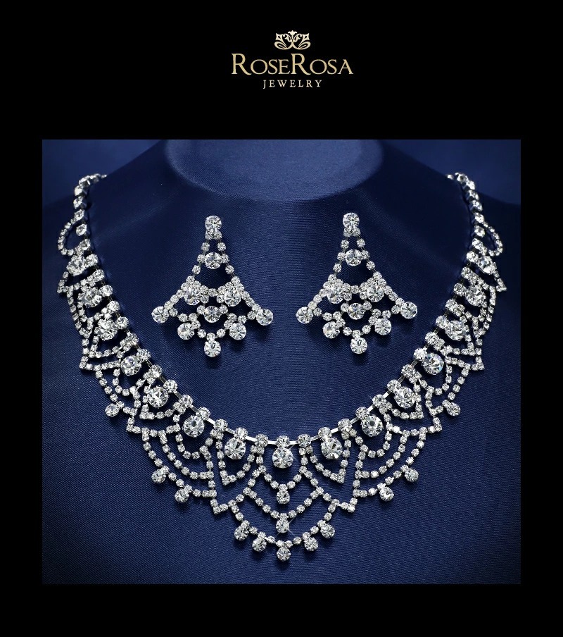 ブライダルセット クリスタル ブライダル ネックレス rose rosa ピアス イヤリング ブライダルジュエリー ウェディングセット 1年無償修理保証 日々の定番 卒園