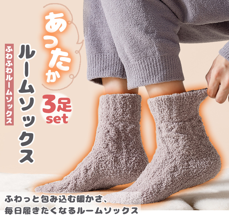 もこもこ ルームソックス 靴下 全3色 3足セット ルームソックス 足元 冬 冬用 くつ下 フットウエア あったか 冬 暖かい 可愛い 冷えとり 冷え取り 在庫限り