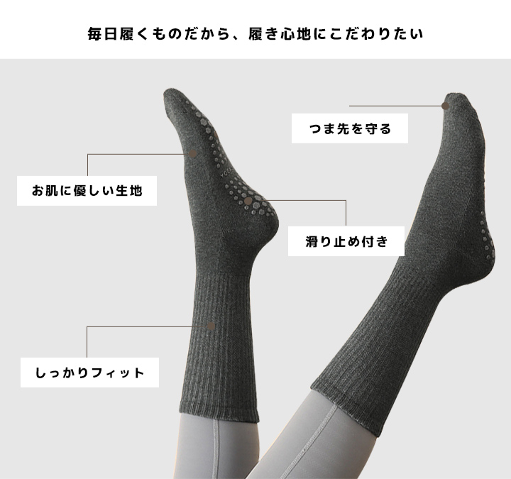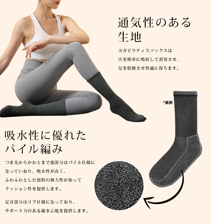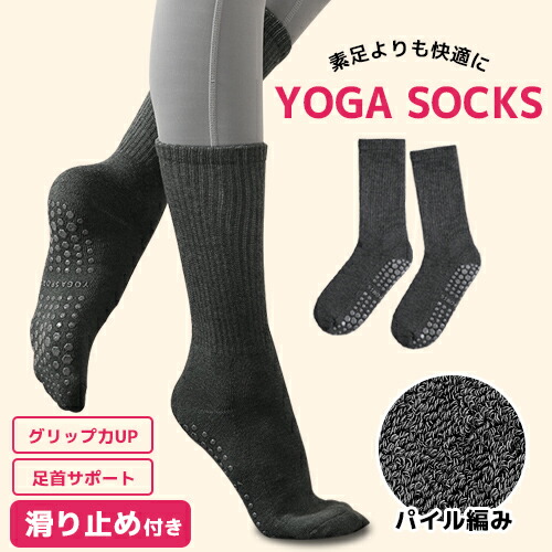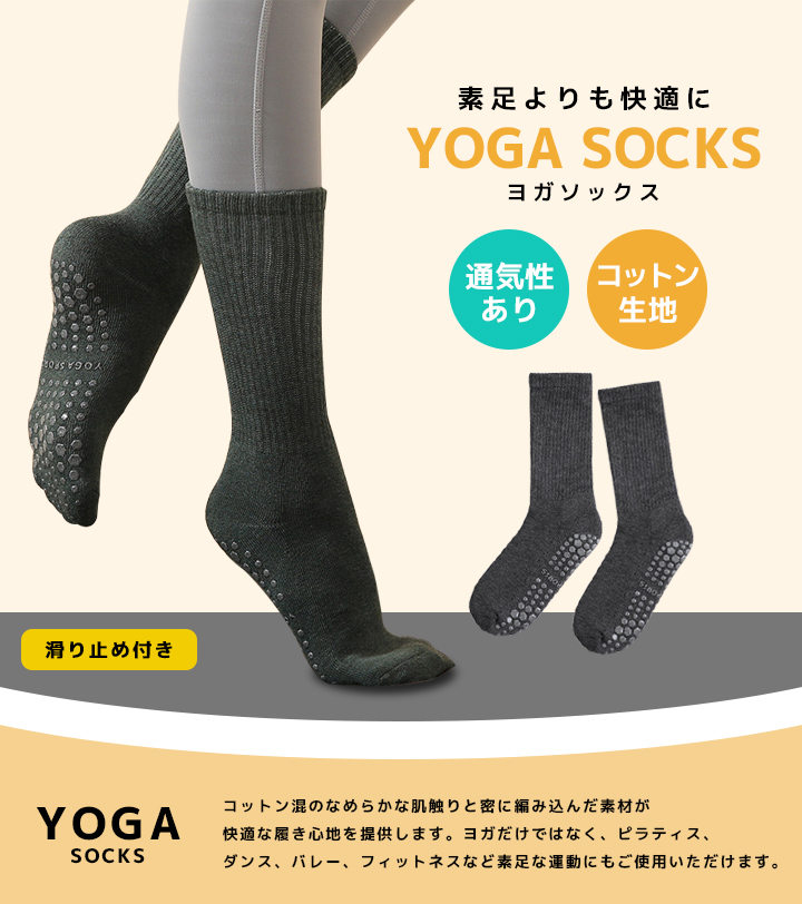 ヨガソックス 滑り止め 22〜25cm ヨガ靴下 クルーソックス 滑り止め付 ずれ落ちにくい ヨガウェア ピラティス ホット レディース おしゃれ 日々の定番 卒園