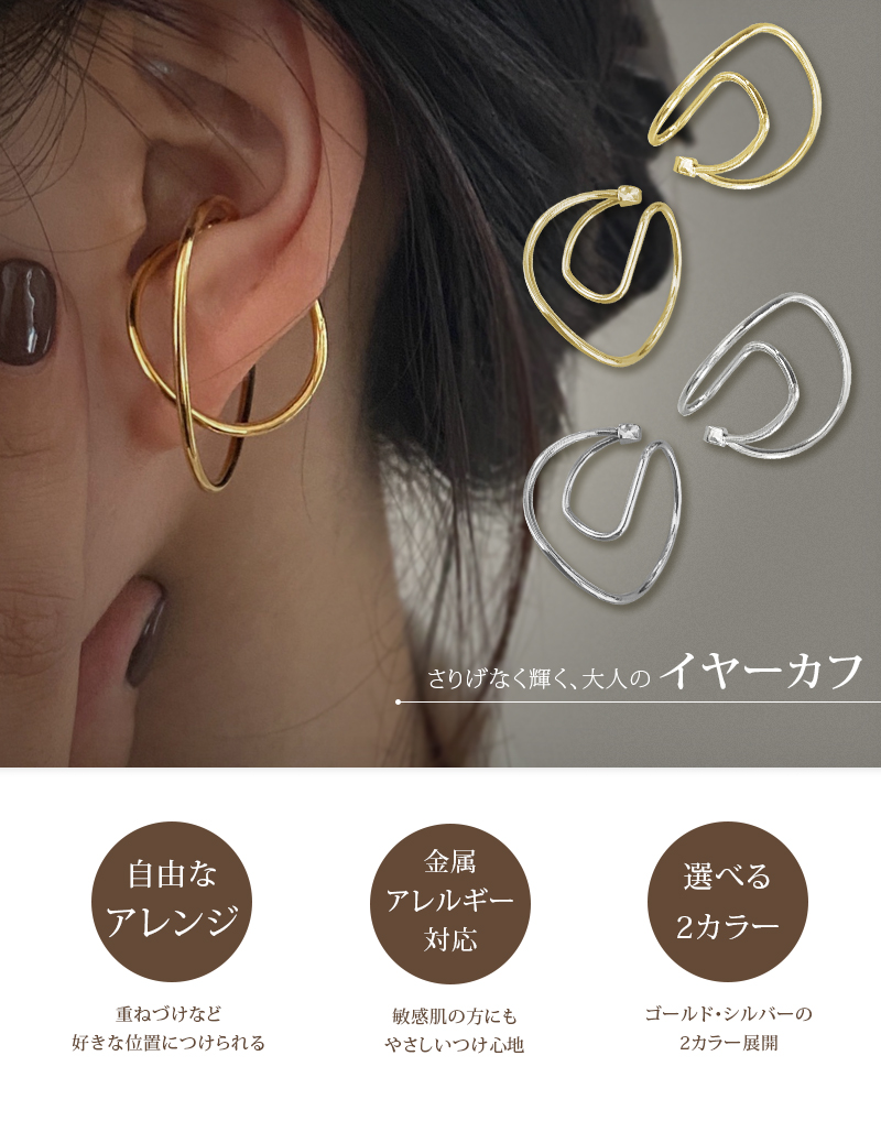 イヤーカフ イヤカフ ジュエリー 金属アレルギー対応 ゴールド シルバー 上品 大人 おしゃれ かわいい トレンド 韓国風 左右セット オフィス 結婚式 パーティー
