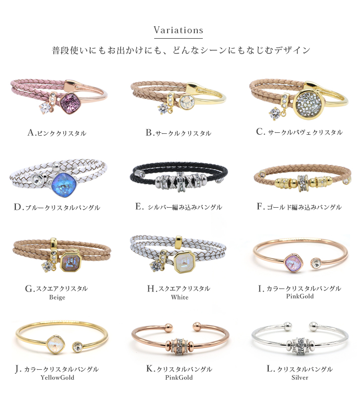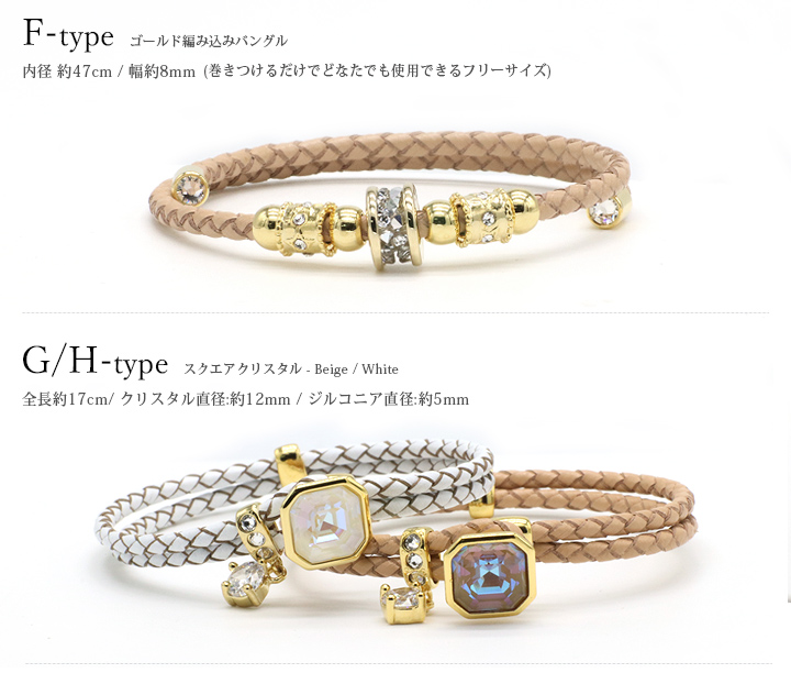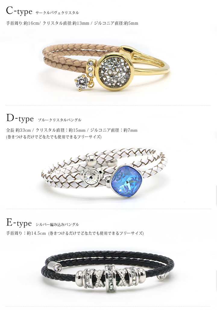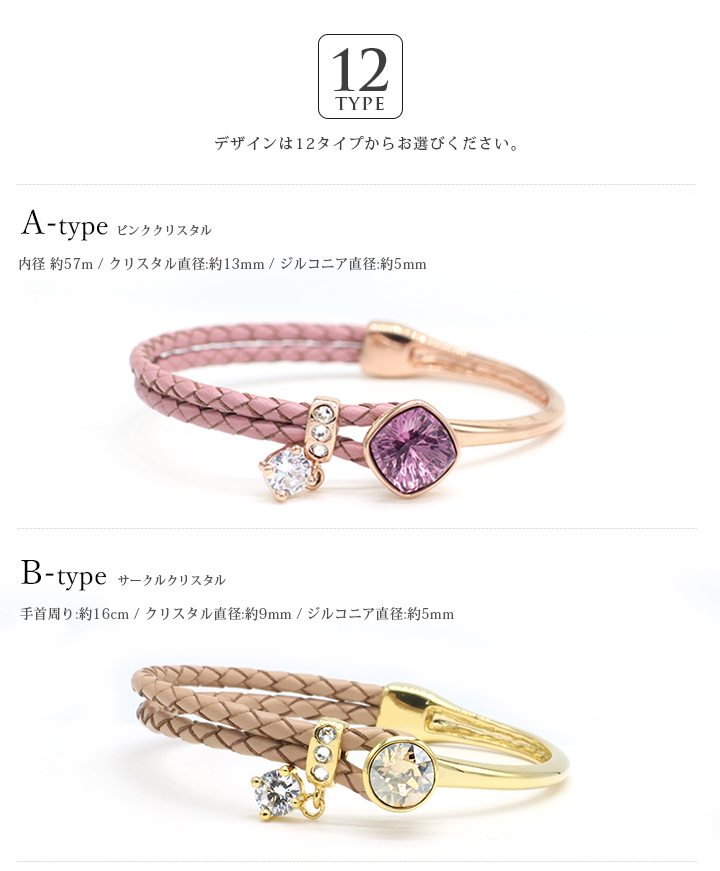 | サイズ | 【A】 内径 約57m / クリスタル 直径:約13mm / ジルコニア直径:約5mm 【B】 手首周り:約16cm / クリスタル 直径:約9mm / ジルコニア直径:約5mm 【C】 手首周り:約16cm/ クリスタル 直径:約13mm / ジルコニア直径:約5mm 【D】 全長 約33cm / クリスタル 直径:約15mm / ジルコニア直径:約7mm 【E】 手首周り:約14.5cm 【F】 全長 約47cm/ 幅約8mm 【G】 全長約17cm/ クリスタル 直径:約12mm / ジルコニア直径:約5mm 【H】 全長約17cm/ クリスタル 直径:約12mm / ジルコニア直径:約5mm 【I】 全長約17cm / クリスタル 直径:約12mm / ジルコニア直径:約5mm 【J】 全長約17cm / クリスタル 直径:約12mm / ジルコニア直径:約5mm 【K】 手首周り : 約16.5cm / モチーフ 約10mm 【L】 手首周り : 約16.5cm / モチーフ 約10mm |
