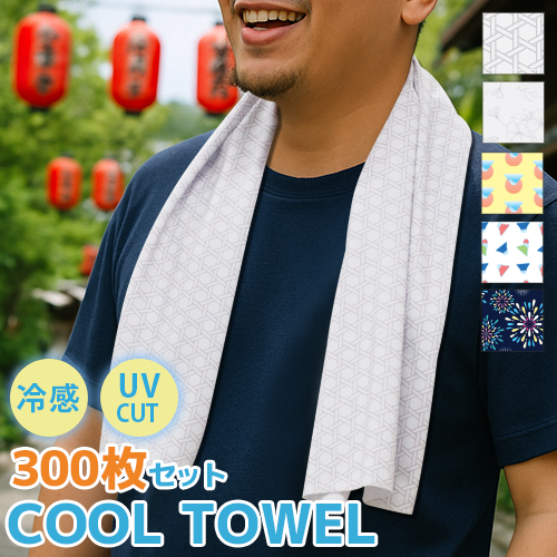 クールタオル 300枚セット ひんやりタオル 冷却タオル ひんやりスカーフ 祭りタオル 専用ポーチ付 柄入り 当店オリジナル 熱中症 暑さ対策 日々の定番