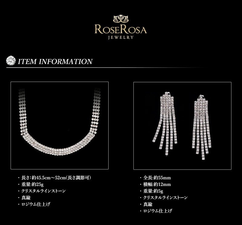 ブライダルセット クリスタル ブライダル ネックレス rose rosa ピアス イヤリング ブライダルジュエリー ウェディングセット 目玉 在庫限り 卒園