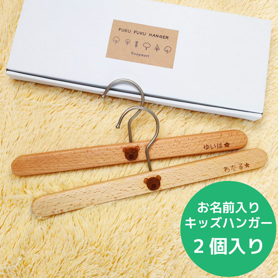 名入れ 女の子 男の子 木製 ハンガー 2個セット お名前入り 福を呼ぶ ふくふくハンガー 名入れ無料 キッズハンガー 子供用ハンガー 名前入りギフト