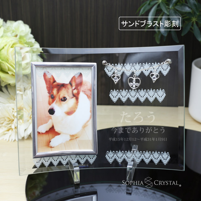 ペット 位牌 フォトフレーム FP-3 写真立て ペットメモリアル 仏具 手元供養 49日 虹の橋 クリスタル ガラス 彫刻 おしゃれ 犬 猫 うさぎ インコ