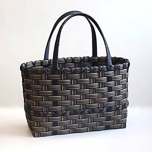 商品名:WrapFun 紙バンド手芸用ホビーテープ トライアルキット ストライプバッグキット 黒系 少し大き目お買い物バッグ