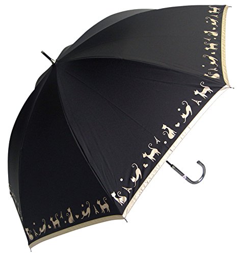 オカモト原宿店 晴雨兼用 日傘 ネコ柄 (紫外線遮蔽率99% / 樹脂カラーコーティング) ブラック 50cm (UVカット/遮光/遮熱) 長傘 手開