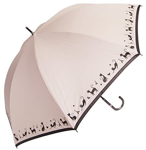 【かわいい黒ネコ模様!】表地の裾に可愛い黒猫模様を、裏地にカラーコーティングを施し、機能性もデザイン性にもこだわりました。豊富なラインナップでお好きなカラーを楽しむことも可能。お好みの日傘でお出かけください。