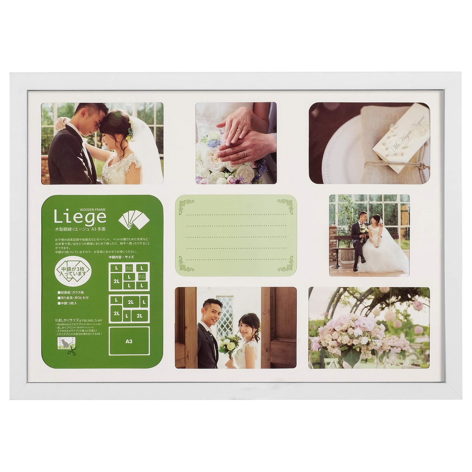 ・[中額1]Lサイズを5枚、ましかくサイズを2枚、2Lサイズを1枚飾れます。