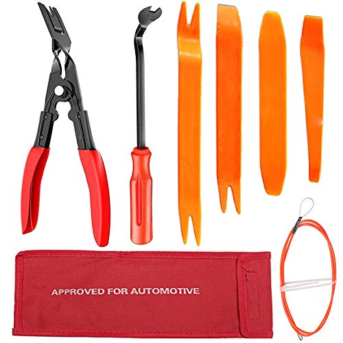 ToBeBold 内張り剥がし クリッププライヤ クリップクランプ ツール ドライバー型 プライヤ 型 パネルはがし 収納袋付き レッド